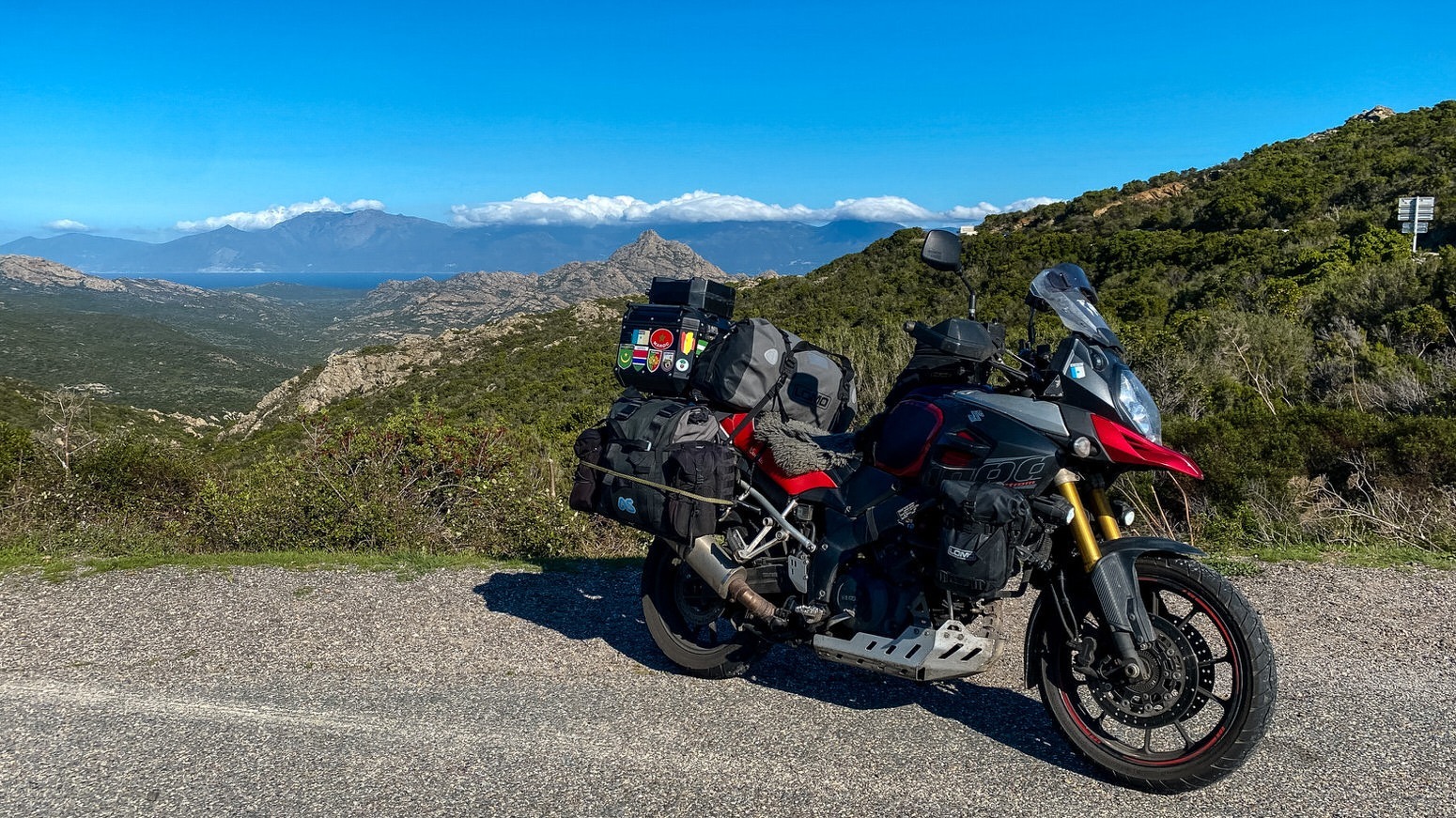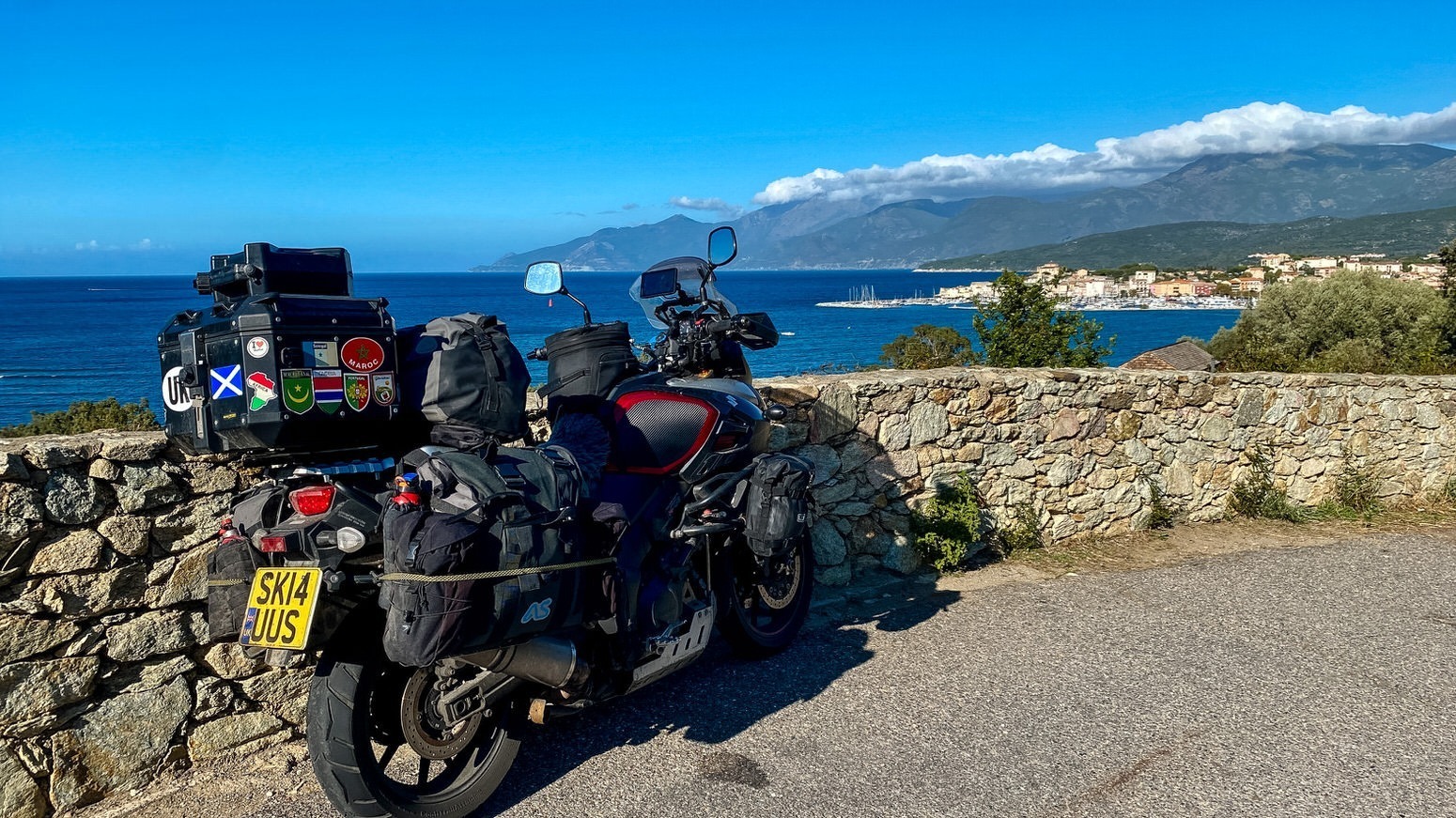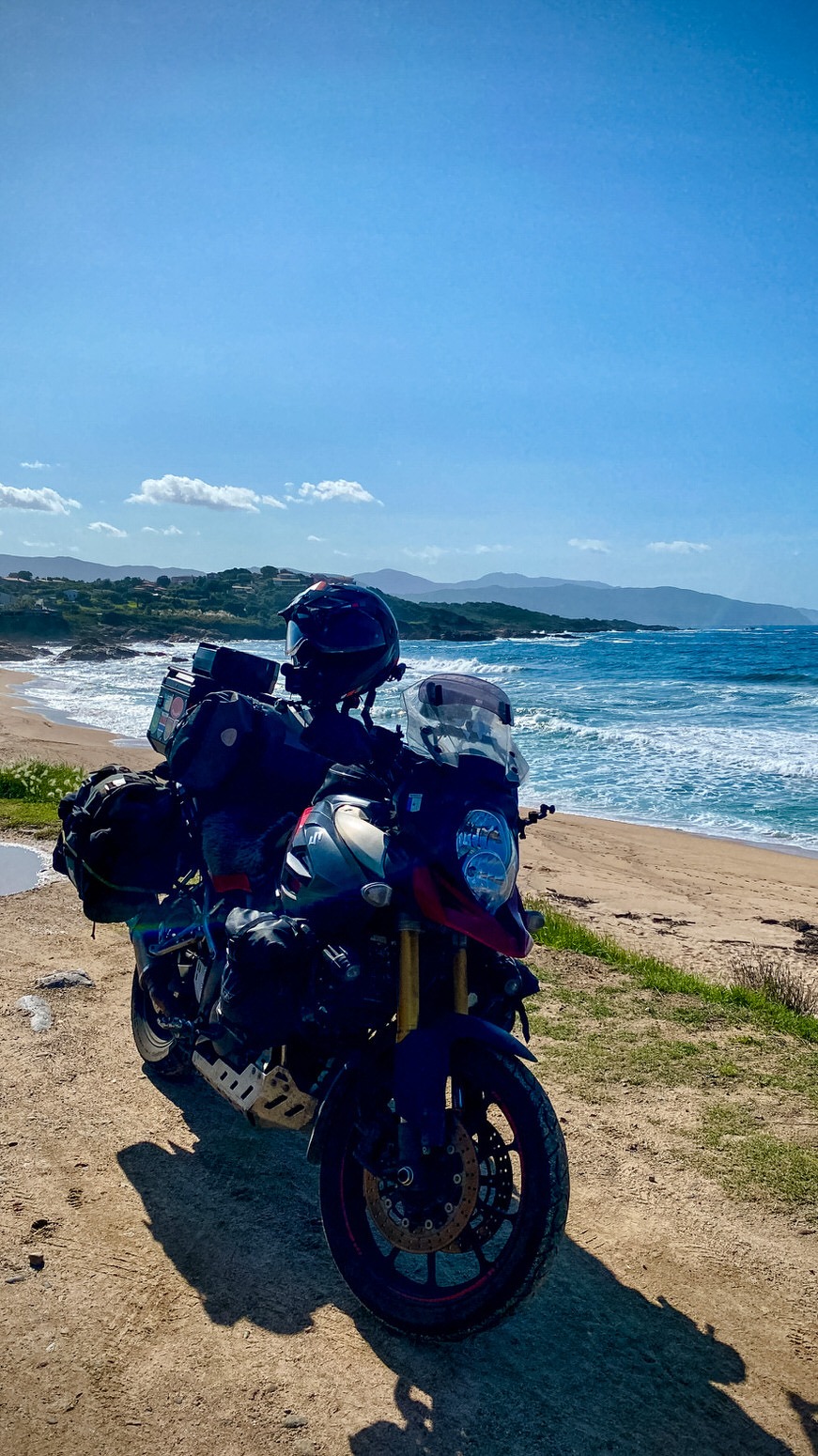 CAMPING U PEZZO is great. As you walk out of the camp entrance there is a beach and the bright blue Mediterranean Sea. There are lots of trees on the site, providing lots of shade – as the sun is still quite strong, even in the late afternoon. It’s 12eu a night for the me, the bike and a tent – which is really good. I’m the only tent here as it’s all French or German campervans or motorhomes, and as usual I’m the odd one out being the only tent. When I’m sat outside my tent drinking tea, daydreaming or admiring the view, as they walk past they seem to look at me pitifully; like I’m a waif, or a stray – which I suppose I am, really… The nearby town is within walking distance, but I’m too tired for that. I’m here for a few days, making the most of the UV’s and then I’m going to catch a ferry over to Marseille or Toulon. After that, Spain methinks…