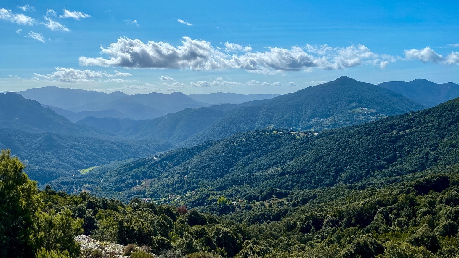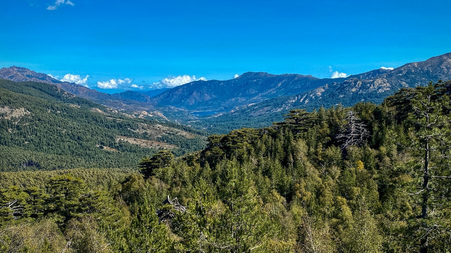Leaving Ajaccio I joined the D1 which took me north – and straight into the mountains with bend after bend climbing higher and higher towards the peaks. After that I followed the D70 and D84 which went up and down and round and around many mountains. Not long after Evisa I stopped at one point to admire the view and it was cold, 11 degrees, and then I realised why: I was at 1450m above sea level…! It was still sunny and if you got out of the breeze it was really warm on your face, which was perfect for a mid-day break to contemplate the world in the peace and quiet of the mountains.