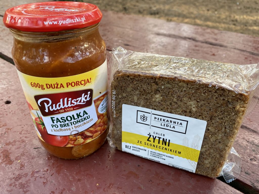 On my journey I’ve found some delightful things to eat. In Poland I found this wonderful brown bread with nuts and these jars of sausage and veg in tomato sauce. Very tasty, indeed.