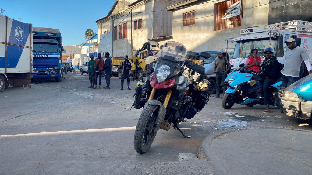 Once I got onto the open road I went to turn on my intercom to listen to music – and there was no intercom. The module had completely gone…! I left my helmet near the bike on the ferry and at one stage I saw someone looking at my helmet and thought nothing of it. Obviously, someone fancied it, but without the rest of the module it’s going to be completely useless. Mauritania is going to be a very boring ride without music…! Fortunately I had taken my GoPro off the helmet as I had wanted to capture some footage. I was so glad I’d done that.
