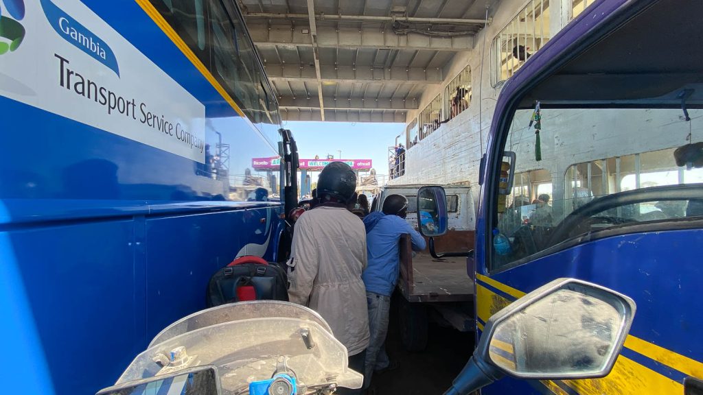 This morning I had the bike packed early and I was at the Banjul Ferry Terminal for 8.30 – just in time to catch the 1130 ferry… When I arrived at the ticket office (which cost about £1) I asked the ticket clerk what time the ferry was leaving – and she said “Soon” – which in Africa-speak means ‘Sometime Today’.