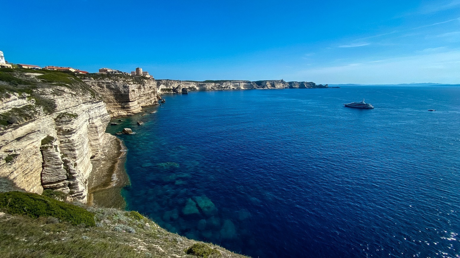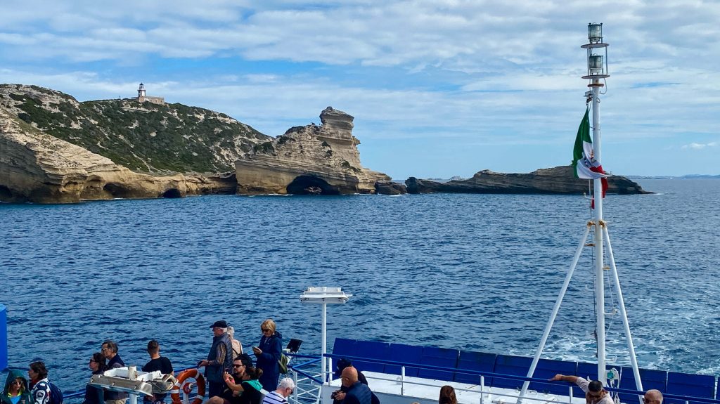 A few days ago I caught the ferry from the northern tip of Sardinia over to Corsica. The ferry arrived at Bonifacio, and it’s one heck of an experience as the ferry enters the port. As you approach Bonifacio the high cliffs are sculpted into strange shapes due to the erosion by the wind and the sea over millions of years, and then to get into the port, the ferry has to squeeze through a narrow entrance with these sculpted cliffs towering high above the ferry on both sides. It’s an amazing experience.