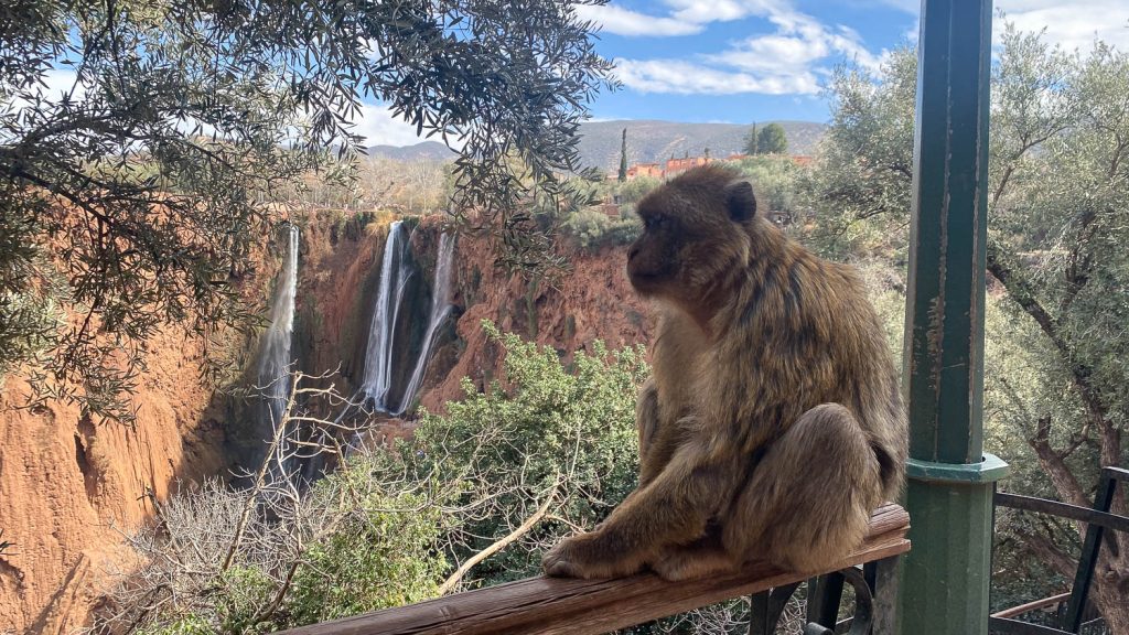 First I headed north east towards the Ouzoud Falls, where you have to park-up and then walk about half a mile to get to the falls. There’s NOT a lot of water in Morocco at the moment so the falls were not as good as they usually are (or so I was told) but it was still an impressive sight. There is a good vantage point at the north of the falls, but the best vantage point is to the south. A narrow alleyway leads you down and there are stalls to buy trinkets, drinks or food. About half-way down there is a large vantage point where there was lots of monkeys. I have a feeling they are Barbary apes, and the ones I’ve seen before in Gibraltar were pretty nasty, but these were extremely tame towards people and quite happy to pose for the camera.
