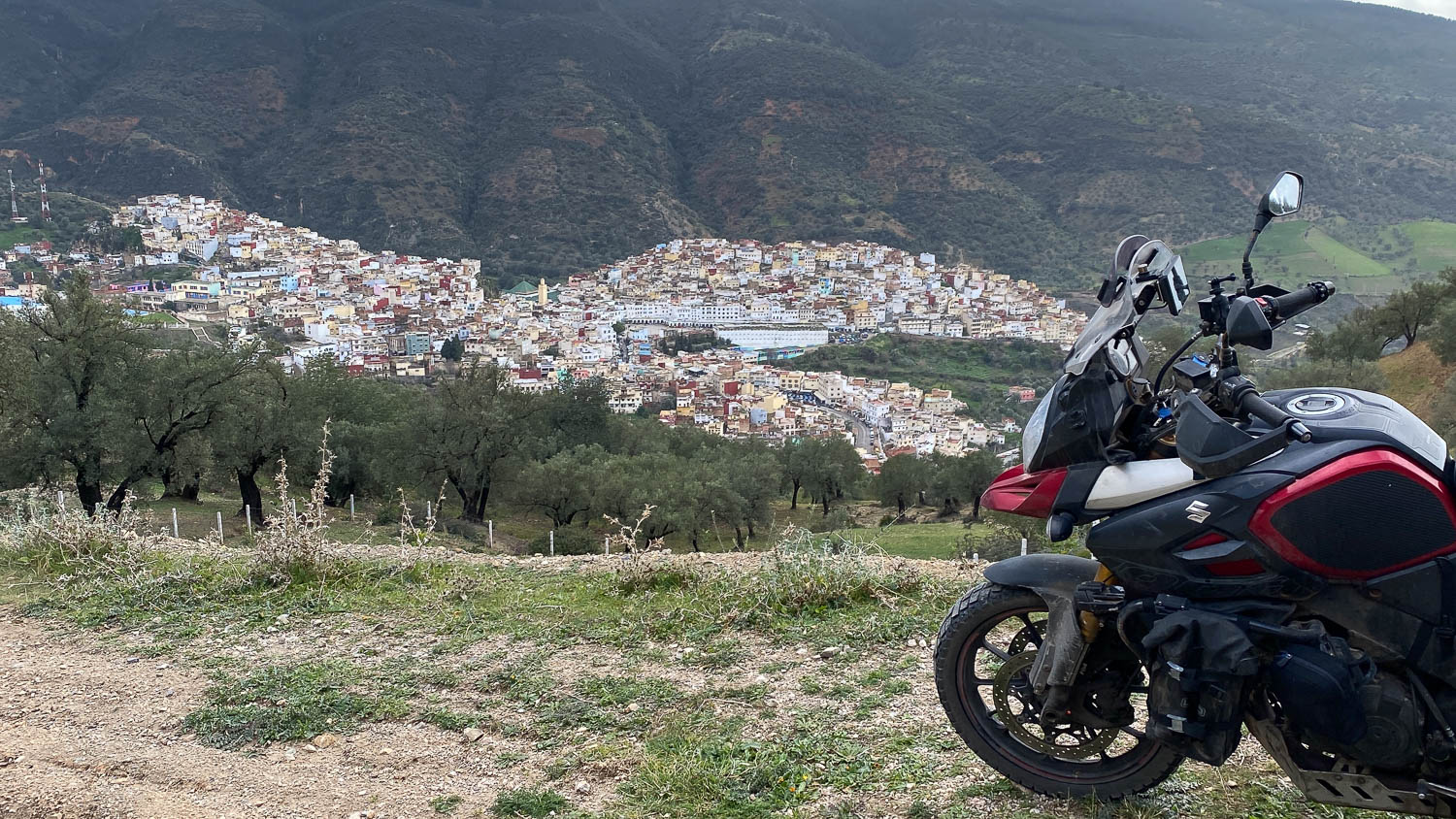 Heading north east I ended up at Moulay Idris, which is a small town in the hills a little north to the city of Meknes. Today’s ride was around 150 miles and it was pleasantly warm, around 26 degrees, and whereas I’d had to close all the vents on my suit a few days ago I had to stop in the afternoon to open them all up again.