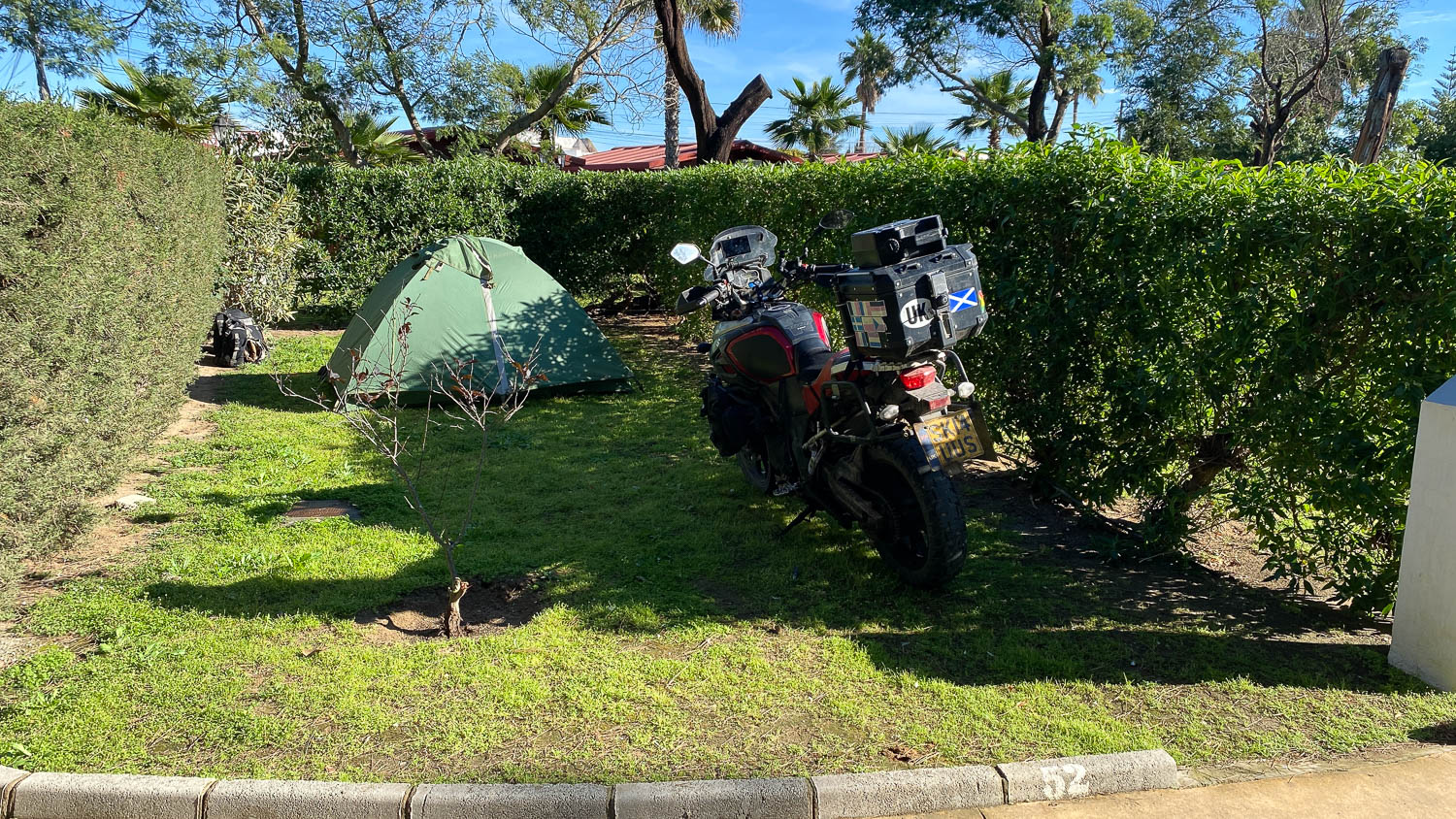 I got to the campsite around 6pm. It’s located on the coast at La Linea and about 2 miles north of Gibraltar. I soon had my tent up, the kettle on the stove and a brew on the go. What a strange day…!