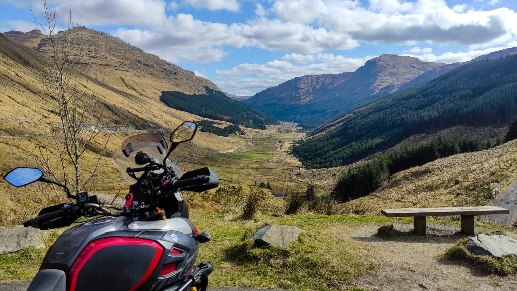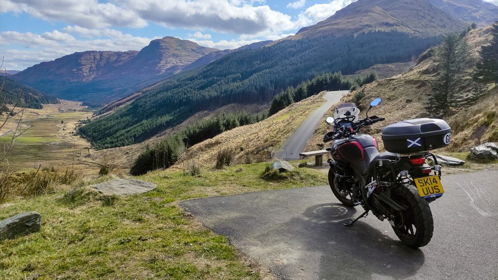 It’s the 25th of March and the weather is good – so time for a ride-out. My first stop was on the A83 at the Rest and be Thankful, about half-way between Arrochar and Inverary. It’s a car-park and rest area where you can enjoy the views looking down the green valley of Glen Crow. But besides the view, the best bit is the highly convenient burger van – which makes the most amazing cheese-burgers with a slab of cheese about 10mm thick… I digress.